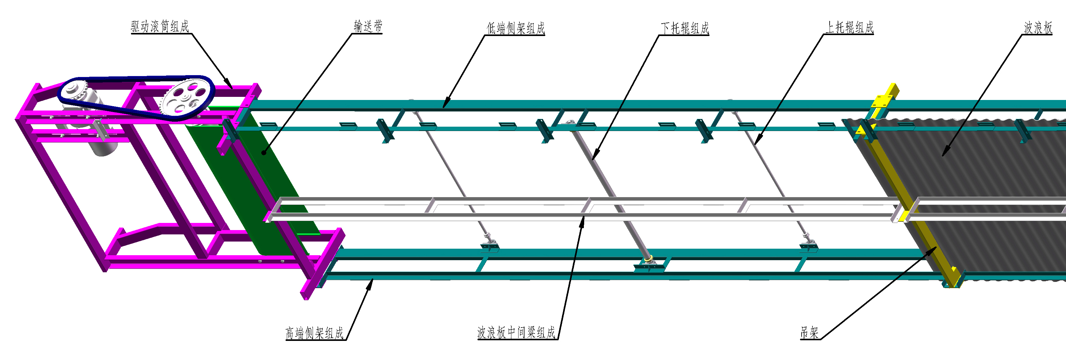 防跑偏装置:使用异性定制防跑偏滚筒,同时在网带上附加导条,网带两侧每10米布置一组导条限位轮。